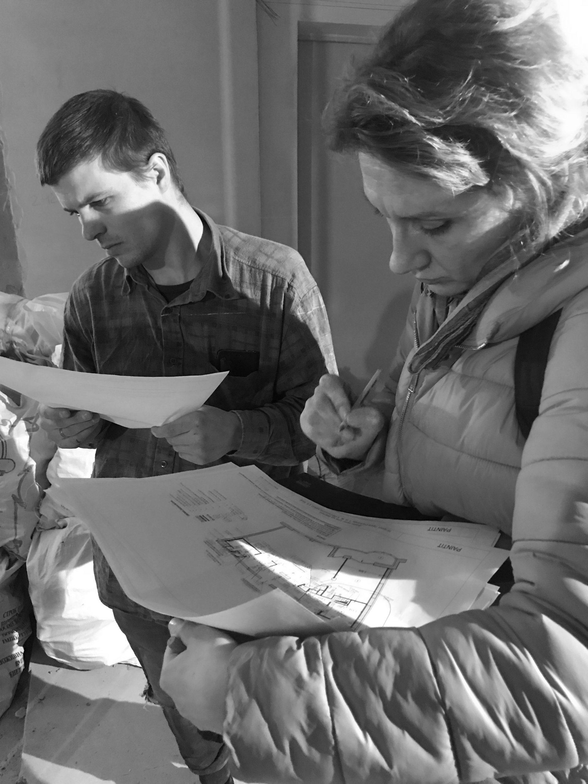 At first we planned to find old doors, but it was quite difficult to find the right size for our concept, so we developed our own design and recreated it.